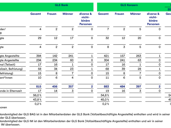An dieser Stelle stellen wir die vollständige (d. h. alle Konzerngesellschaften umfassende) handelsrechtliche Gewinn- und Verlustrechnung gemäß GLS Konzernabschluss dar. Daneben stellen wir die Gewinn- und Verlustrechnung der GLS Bank dar. Es handelt sich in beiden Fällen um ökonomische Größen, die wir unverändert aus den formalen Jahresabschlüssen übernehmen und für diese Darstellung umgliedern.